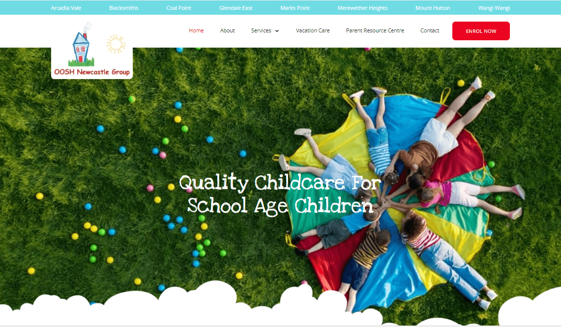 A vibrant, responsive website for OOSH Newcastle, promoting childcare programs and community engagement.