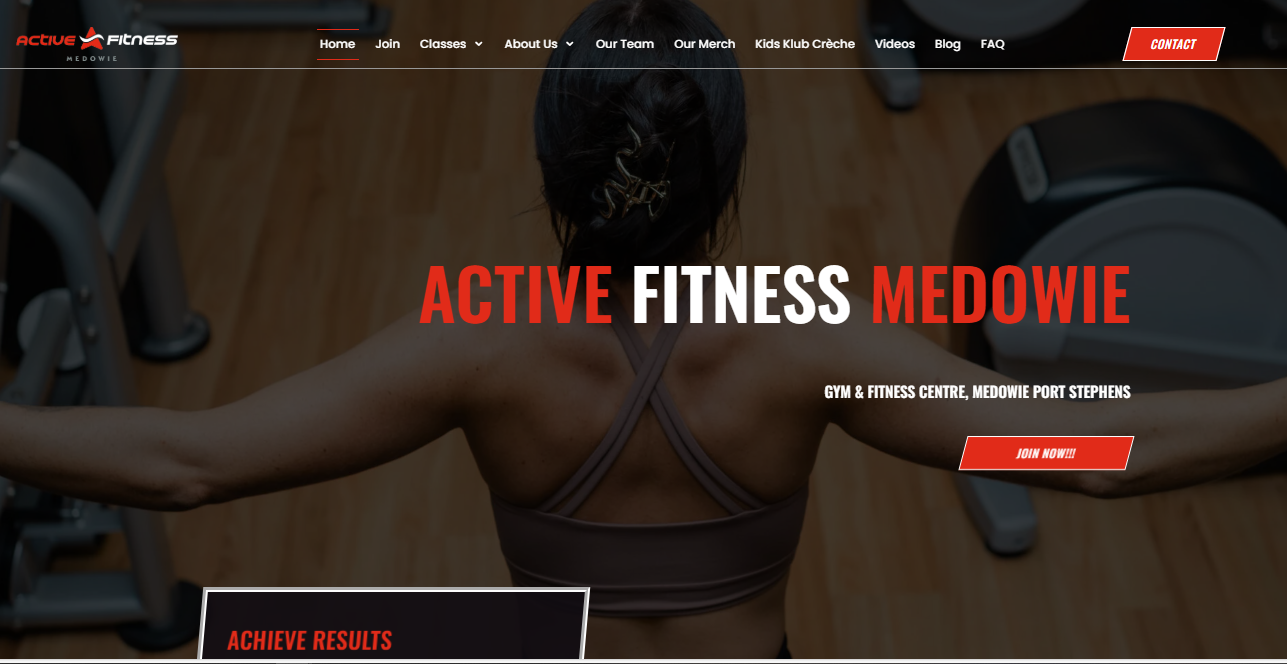 A dynamic website for Active Fitness Medowie, showcasing gym memberships, personal training, and fitness programs.
